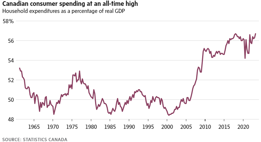 None of this is good news for the Bank of Canada as it tries to cool inflation by discouraging people from buying stuff. Instead Canadians defied rate hikes and recession warnings to fork out for goods such as vehicles and services, including restaurants and hotels, at a frenzied pace.