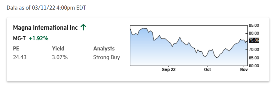 Canadian auto parts maker Magna International Inc MG-T +1.92%increase cut its annual sales forecast on Friday, as supply chain snags and higher utility costs keep vehicle production under pressure.