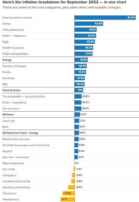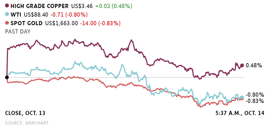 (8:30 a.m. ET) Canada’s CPI for September. Consensus is flat month-over-month and up 6.8 per cent year-over-year.