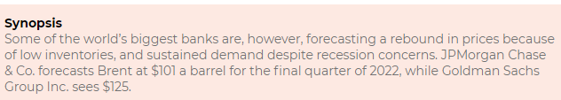 “Central banks now appear to accept that a recession is the price to pay for getting a grip on inflation, which could weigh on demand next year.”