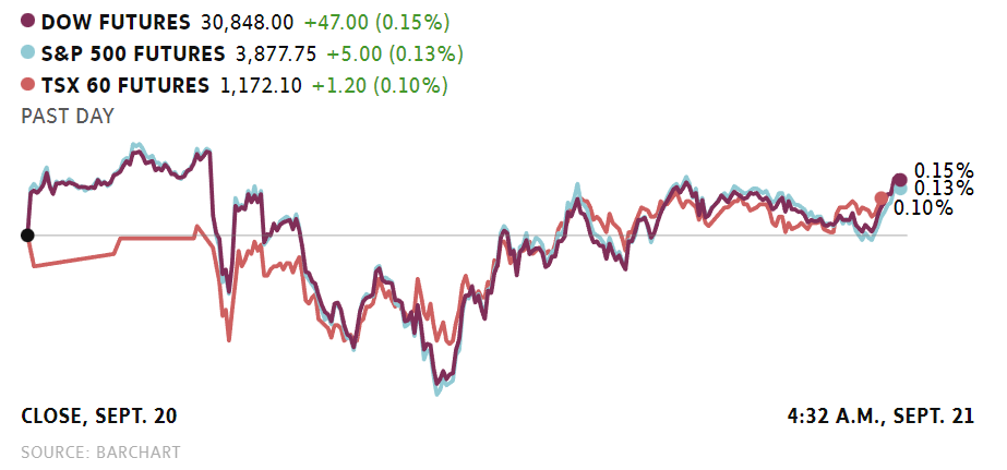 For traders, the day’s key event will be the Fed’s rate decision, due at 2 p.m. Markets have priced in another 75-basis-point hike but investors will also be watching closely for hints about how aggressive the central bank expects to be in the months ahead as it battles inflation.