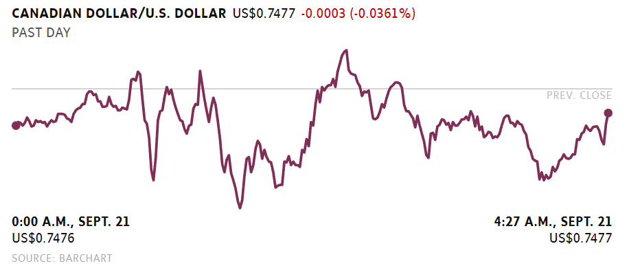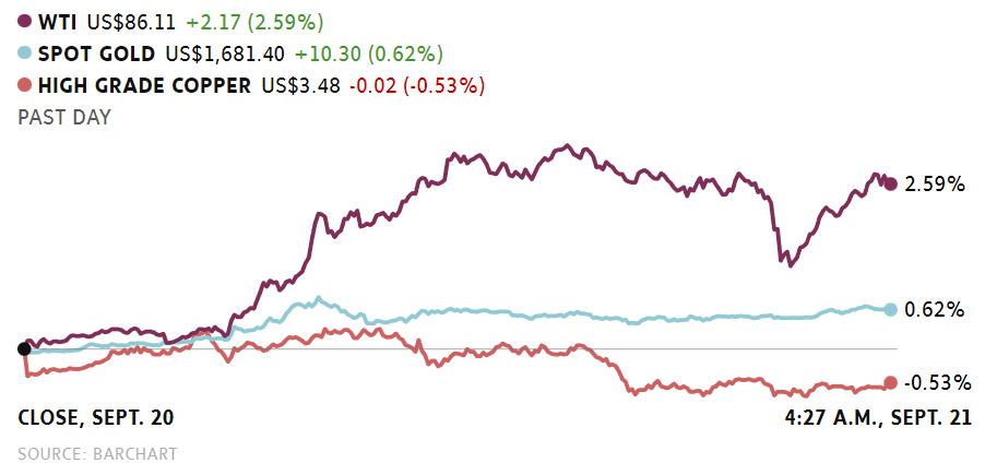 On world markets, the U.S. dollar index, which measures the greenback against other major currencies, more than 0.5 per cent higher to 110.87 after Vladimir Putin’s announcement of a partial military mobilization of reservists triggered safe-haven buying. That was its highest level since 2002, according to Reuters.