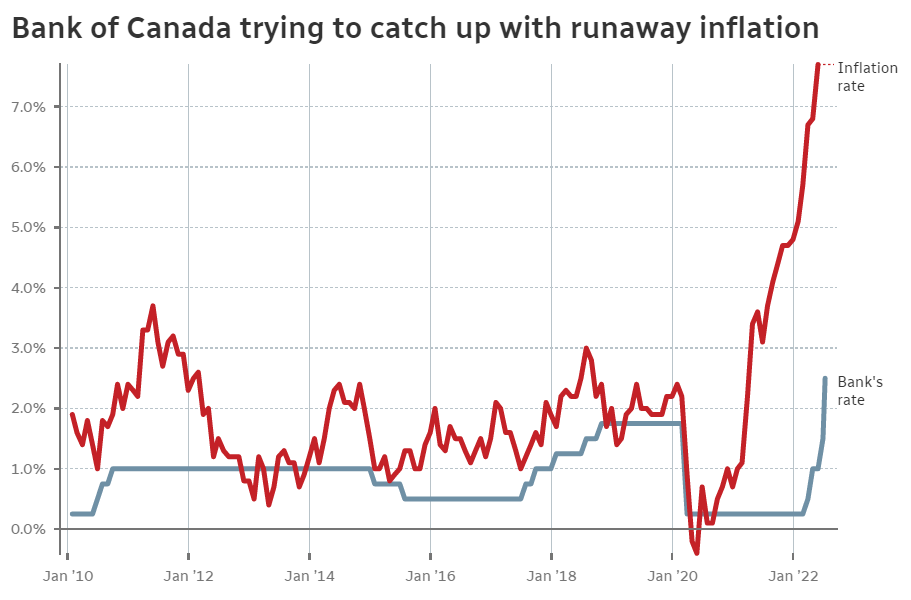 Canada’s central bank is expected to tighten by three-quarters of a percentage point on Wednesday, which would be its biggest hike in 24 years.