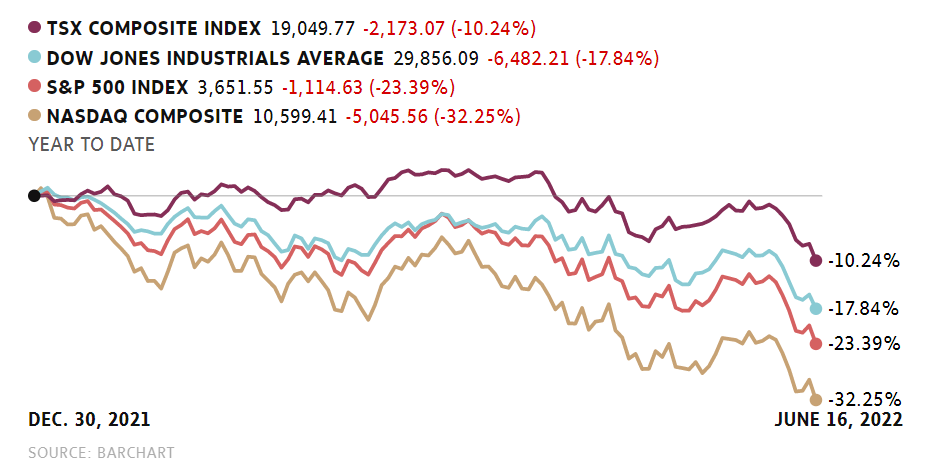North American stock markets tumble as global recession fears intensify after Fed rate hike