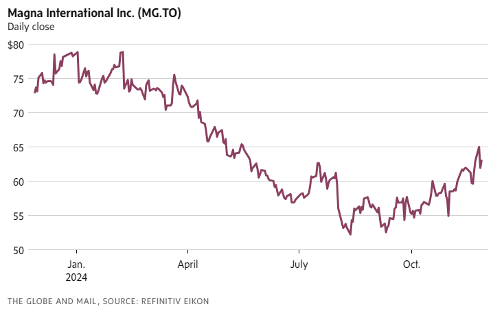 Sales of electric vehicles, a segment in which Magna has a substantial investment with parts such as battery enclosures, have not been living up to expectations. More broadly, light-vehicle production – Magna’s bread and butter – is in a global slump, falling 4 per cent in the third quarter year-over-year.