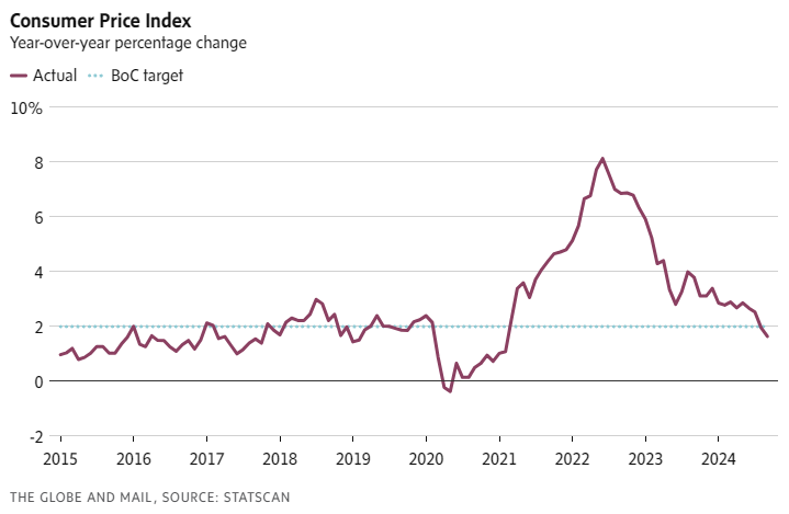 The inflation fight is effectively over, a milestone for the Canadian economy after CPI growth peaked in 2022, prompting central bankers to jack up interest rates to cool demand. Because of the progress to date, the Bank of Canada has delivered three consecutive rate cuts since June, taking its policy rate to 4.25 per cent from 5 per cent.