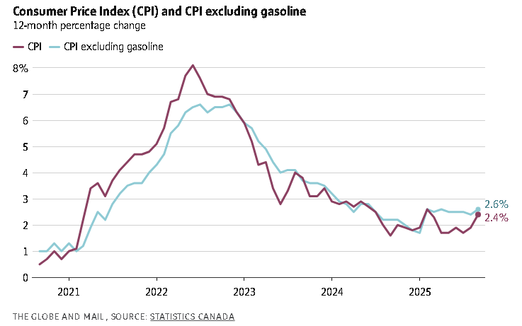 Since then, the Canadian economy has thrown off mixed signals. There was a rebound in employment in September and a larger-than-expected jump in inflation that month, to 2.4 per cent from 1.9 per cent.