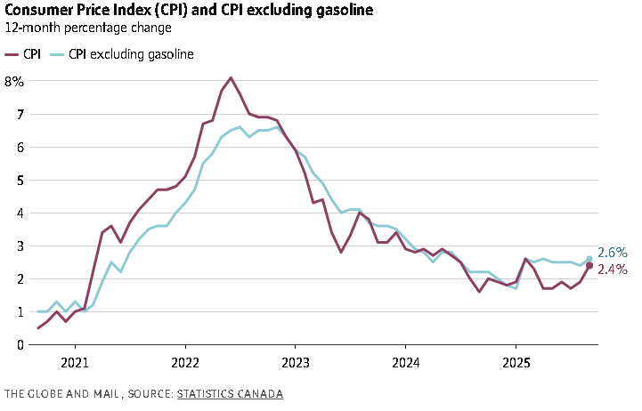 The bank lowered its policy rate to 2.5 per cent last month, the first rate cut since March. It resumed monetary policy easing after deciding that downside risks to Canada’s tariff-battered economy outweighed upside risks to inflation.