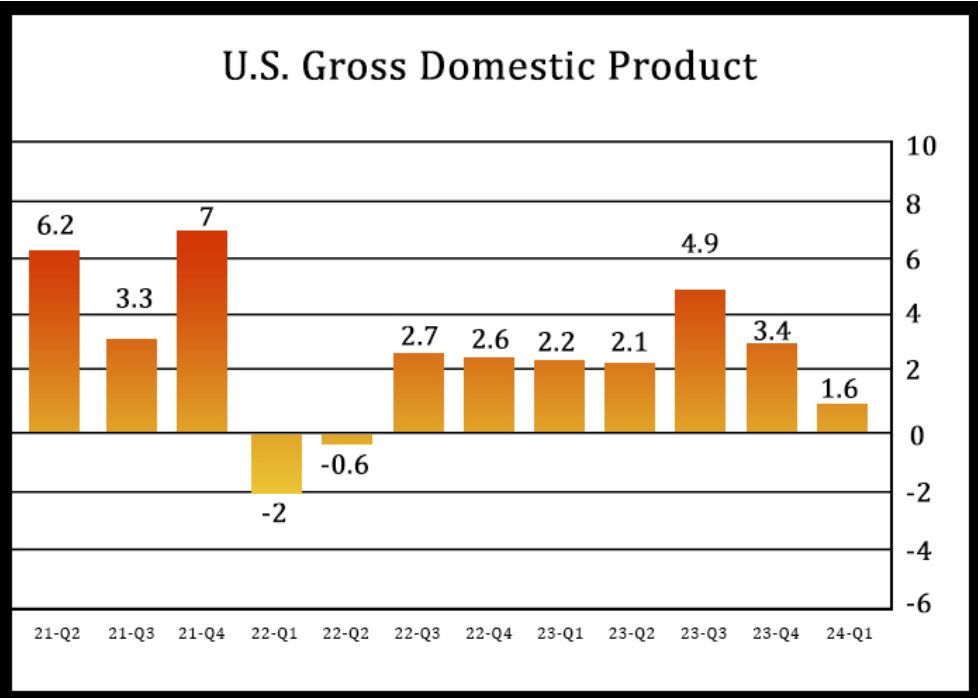 The Commerce Department said gross domestic product increased by 1.6 percent in the first quarter after surging by 3.4 percent in the fourth quarter of 2023. Economists had expected GDP to jump by 2.5 percent.