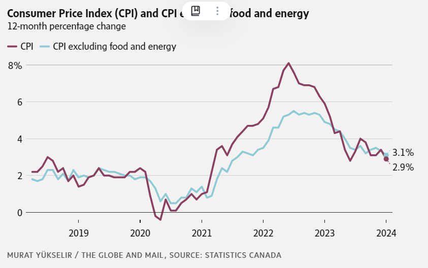 (8:30 a.m. ET) Canadian CPI for January. The Street is expecting a rise of 0.4 per cent from December and up 3.3 per cent year-over-year.
